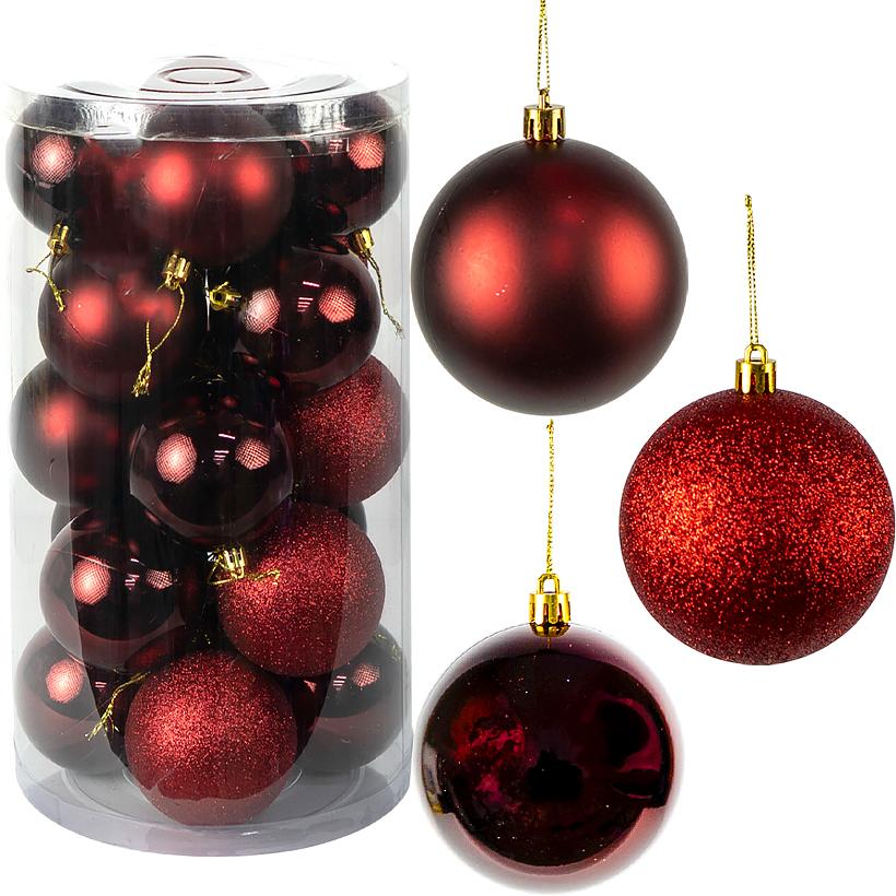 Набір містить 24 пластикові ялинкові кулі діаметром 6 см із трьома типами покриття — глянцевим, матовим та з блискітками. Поєднання фактур створює ефектне та святкове оздобленн ...