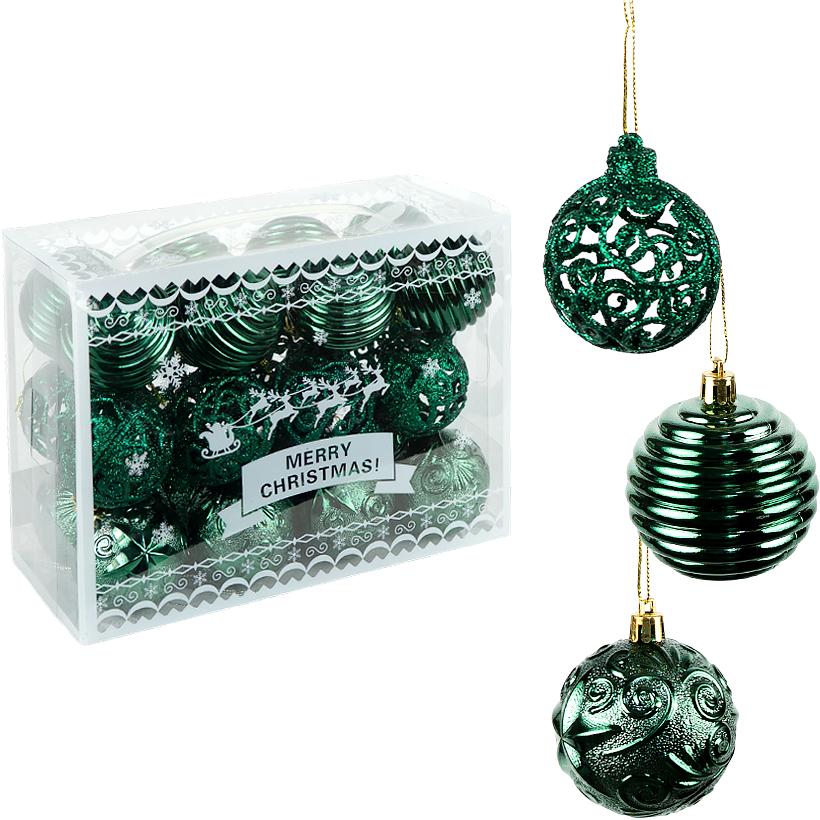Набір новорічних пластикових куль — стильна прикраса для святкової ялинки. У комплекті 24 кулі діаметром 6 см: 8 ажурних, 8 рельєфних і 8 з декоративним візерунком. Усі кулі ви ...