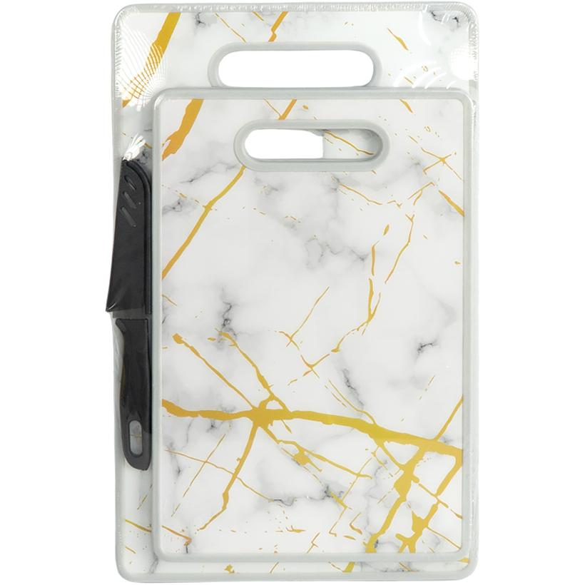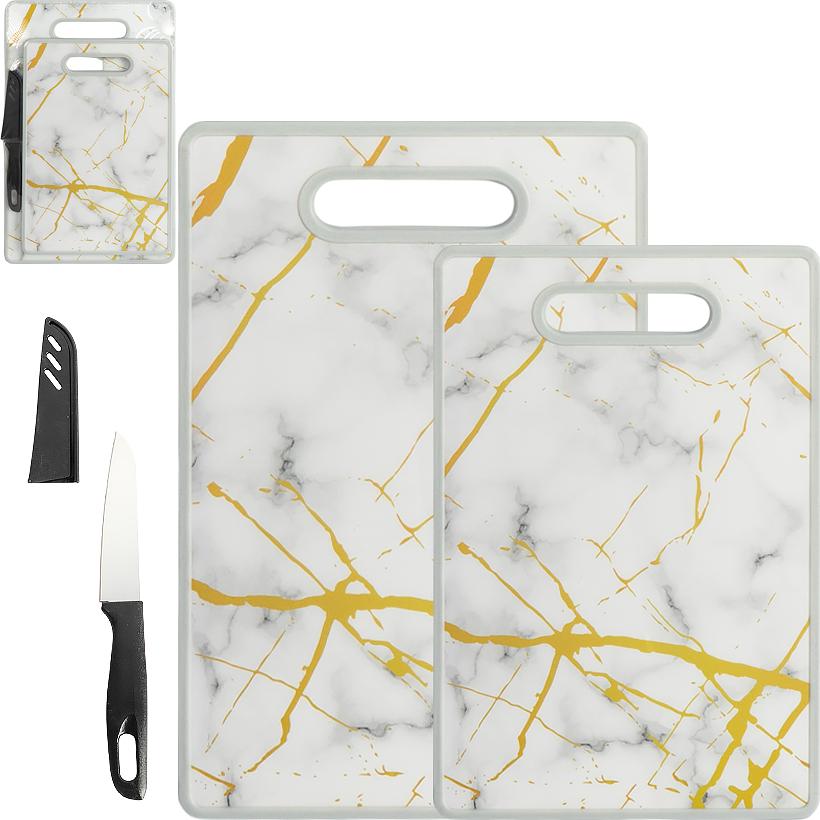 Набір дощечок 2шт з мармуровим візерунком + ніж RH-08 білий