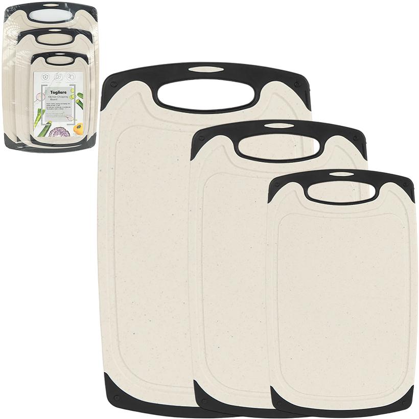 Набір обробних дощок RH-19/7617-2 складається з 3 дощок різних розмірів: 15×25×0,5 см, 18,5×33×0,5 см та 40×23×0,5 см, що зручно для різних кухонних процесів. Підходять для нарізання овочів, фруктів, м’яса, риби та хліба. Дошки виготовлені з міцного пластику, не вбирають запахи та легко миються. Зручні ручки забезпечують комфорт у використанні та зберіганні. Практичний набір для щоденного використання на кухні.