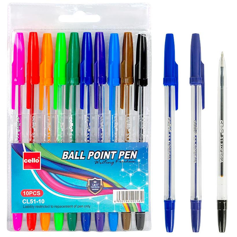 Набір масляних кулькових ручок Cello Корвина DM-XK-10 включає 10 кольорів і підходить для письма, нотаток та оформлення записів. Товщина лінії становить 1 мм, використовуються чорнила різних кольорів, корпус виконаний із прозорого пластику. Прозорий корпус дозволяє контролювати рівень чорнила, а ковпачки з кліпсами зручні для фіксації на блокноті або кишені. Підходить для навчання, роботи та творчості. Ціна вказана за весь набір. Товар вигідний для оптових магазинів і підходить для роздрібного продажу.