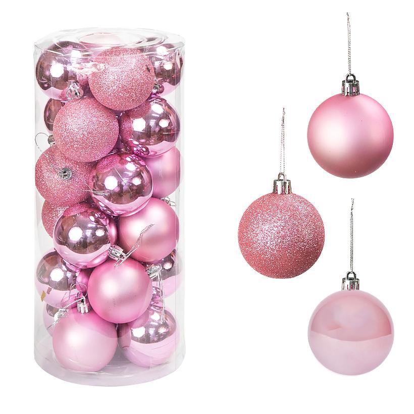 Набір містить 24 пластикові ялинкові кулі діаметром 6 см із трьома типами покриття — глянцевим, матовим та з блискітками. Поєднання фактур створює ефектне та святкове оздобленн ...