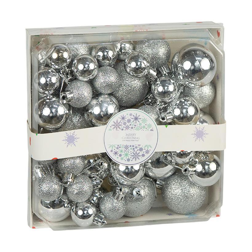 Набір ялинкових куль (44 шт) — стильний комплект новорічних прикрас для оформлення ялинки та святкового інтер’єру. У наборі кулі трьох розмірів: діаметром 5 см (10 шт), 4 см (14 шт) і 3 см (20 шт). Поверхня прикрас представлена у двох варіантах — глянцева та з блискітками, що надає ялинці яскравого та святкового вигляду. Усі кулі мають підвіски й повністю готові до використання. Упаковка: коробка 21×21×7 см, зручна для зберігання та подарункового оформлення.