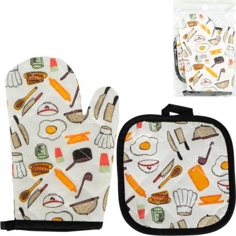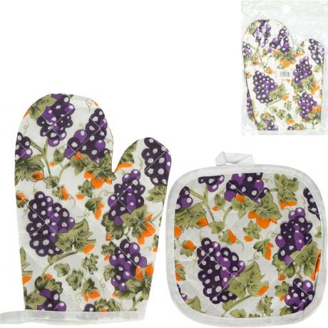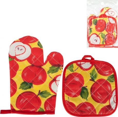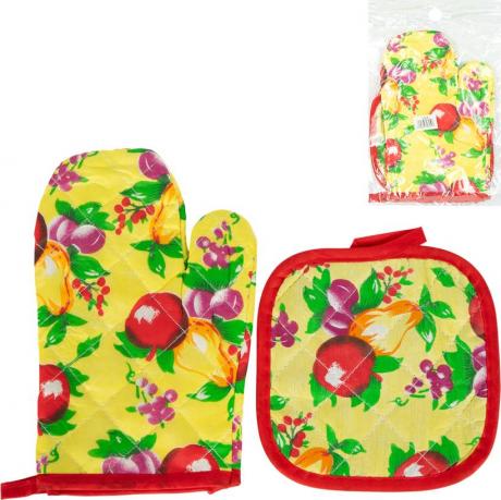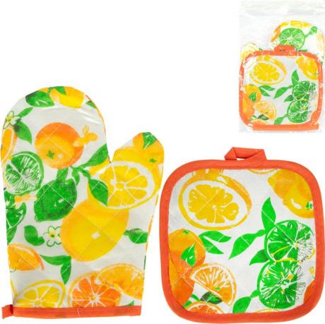 Кухонний набір з рукавиці та прихватки — зручний і незамінний аксесуар для щоденного використання на кухні. До комплекту входять прихватка розміром 16×16 см та рукавиця 24×15 см, які забезпечують надійний захист рук під час роботи з гарячим посудом, деками, каструлями та сковорідками. Вироби виготовлені з щільного текстилю з прострочкою, добре тримають форму та ефективно захищають від високих температур. Яскраві декоративні дизайни з візерунками доповнюють інтер’єр кухні та створюють охайний вигляд. Передбачені практичні петельки для зручного зберігання. Підходить для дому, дачі, закладів громадського харчування та як корисний подарунок.