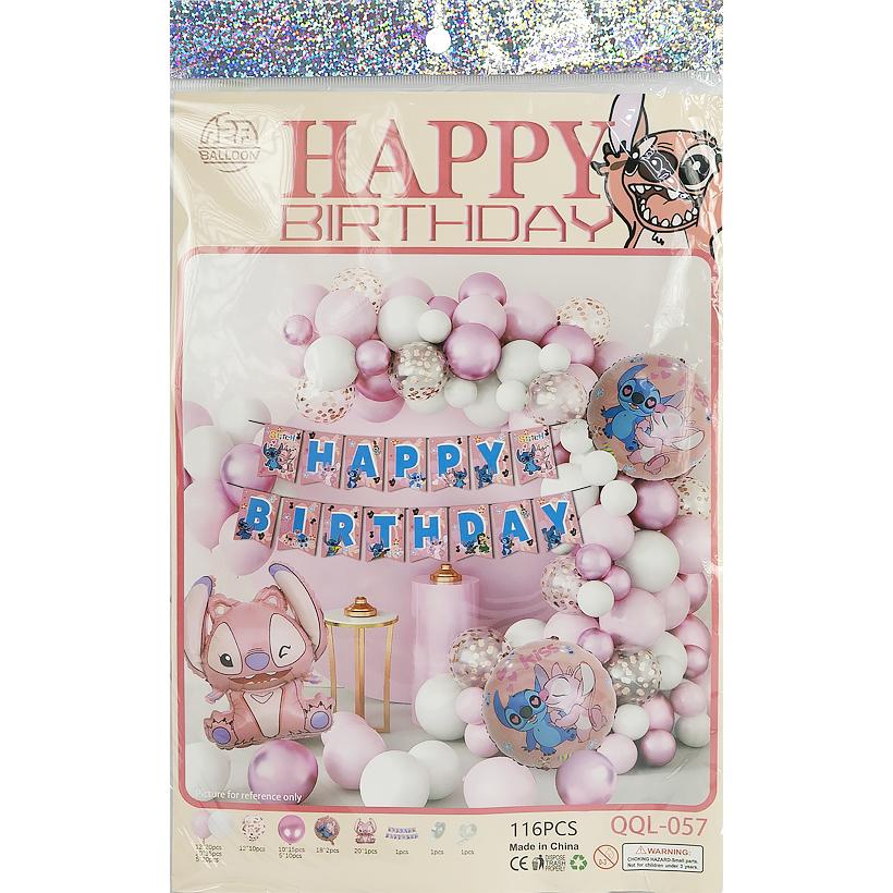 Набір повітряних кульок для оформлення свята 116 шт, підходить для дня народження, дитячих заходів і фотозон. У комплект входять кульки різних розмірів, кульки з малюнком, фігурки та напис, що дозволяє створити об’ємну та ефектну декоративну гірлянду. Усі елементи легко комбінуються та кріпляться за допомогою стрічки й інструмента для монтажу. Упаковка: 35×22 см.