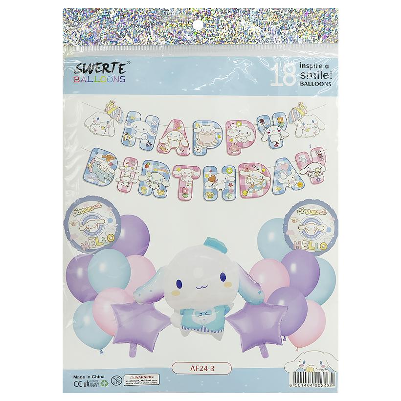 Набір декоративних повітряних кульок для оформлення свята містить розтяжку Happy Birthday зі стрічкою та голкою (висота літер близько 18 см), а також елементи для створення яскравої святкової зони. У комплект входять 12 латексних куль діаметром 10", 2 фольговані зірки розміром 45×50 см, фольгована фігурка приблизно 70×40 см, а також 2 фольговані кулі з малюнком діаметром 43 см. Набір ідеально підходить для дня народження, фотозони та тематичного декору. Упаковка: 23×29,5 см.