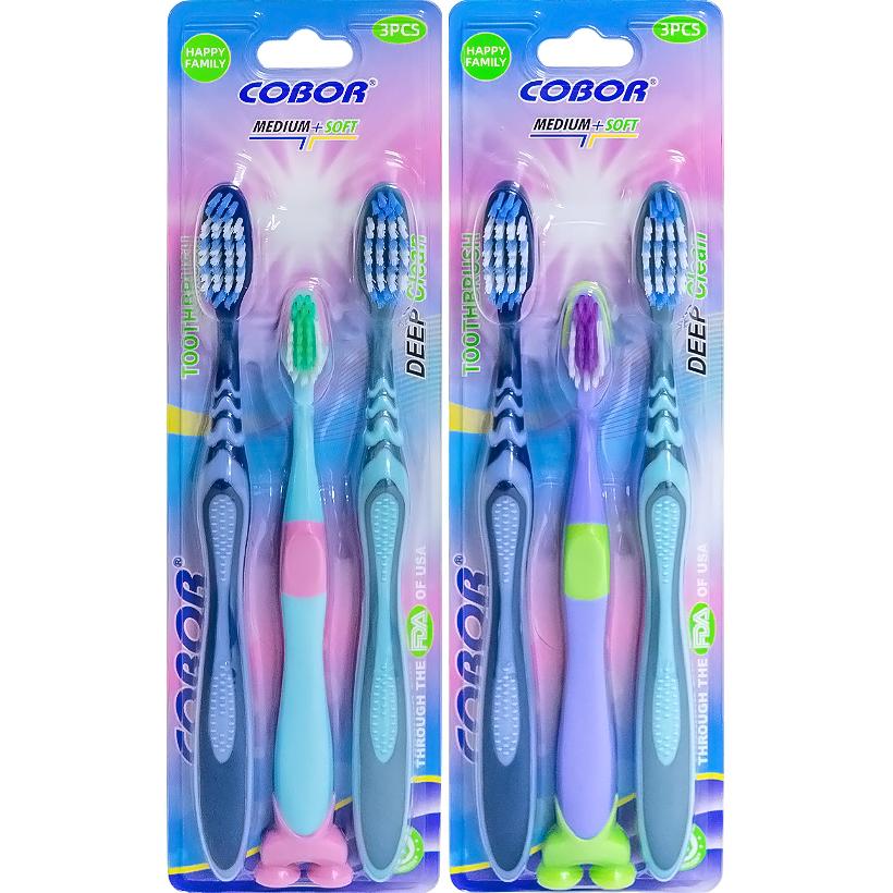 Набір зубних щіток на блістері 3шт (2 дорослі + 1 дитяча) E520