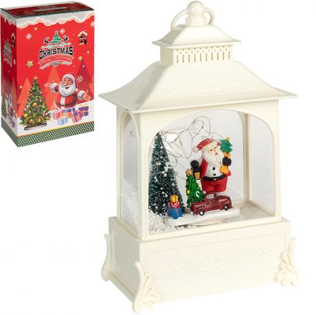 Новорічний декоративний ліхтар ZY-1406USB із фігурками Санти та ялинкою — стильна прикраса, що створює атмосферу свята. Усередині вбудований пропелер, який піднімає сніжинки, утворюючи ефект хуртовини, а LED-підсвітка надає м’якого сяйва. Має 3 режими роботи: вимкнено, з підсвіткою, з підсвіткою та мелодією. Працює від мережі (USB-кабель у комплекті) або від 3 батарейок ААА (у комплект не входять). У верхній частині є гачок для підвішування. Розмір виробу — 28×15×9 см, розмір упаковки — 19×11×29 см. Ідеальний варіант святкового декору чи подарунка, що наповнює дім теплом і різдвяним настроєм.