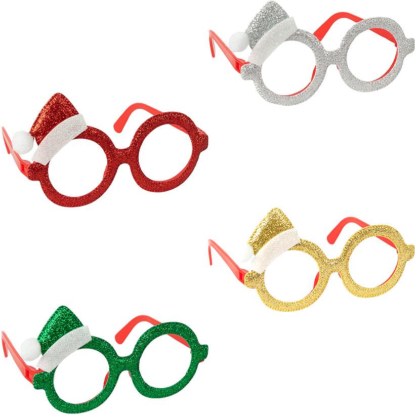 Новорічні окуляри без скелець — яскравий аксесуар для святкових вечірок і фотосесій. Виготовлені з легкого пластику з блискітковим покриттям та декором у вигляді шапочки Санти. Розмір: ширина 14 см, висота 8 см, діаметр оправи 6 см, отвір 4,5 см. Окуляри добре тримаються та підходять для дітей і дорослих. Чудовий варіант для створення веселого новорічного образу.