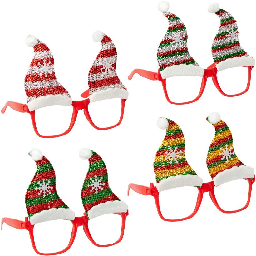 Новорічні окуляри без скелець із декором у вигляді шапки ельфа. Прикрашені блискітками та помпоном, створюють веселий святковий настрій. Ідеально підходять для вечірок, фотосесій і карнавальних костюмів. Розмір: висота 14 см, ширина 14 см, діаметр окулярів — 6 см, отворів — 5 см.