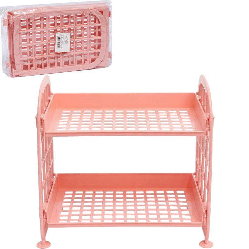 Полиця має розміри 22*20*14 см і виготовлена з пластику. Має два яруси для зберігання. Підходить для використання у ванній кімнаті. Може використовуватися для розміщення бульбашок та інших предметів.