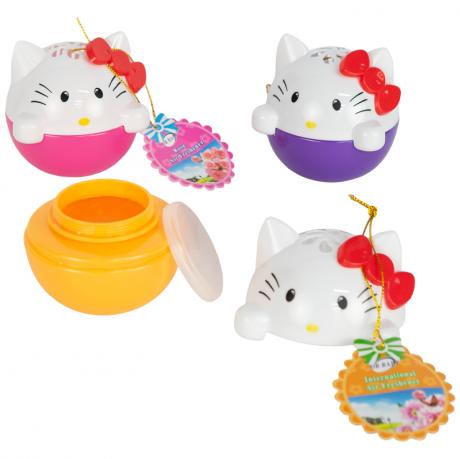 Освіжувач повітря у формі котика — компактний та декоративний ароматизатор для дому, офісу або автомобіля. Тверда формула забезпечує тривале й рівномірне поширення приємного аромату, ефективно усуваючи неприємні запахи. Яскравий дизайн з бантиком робить виріб не лише корисним, а й милим елементом інтер’єру. Простий у використанні — достатньо відкрити кришку, щоб розпочати ароматизацію приміщення.