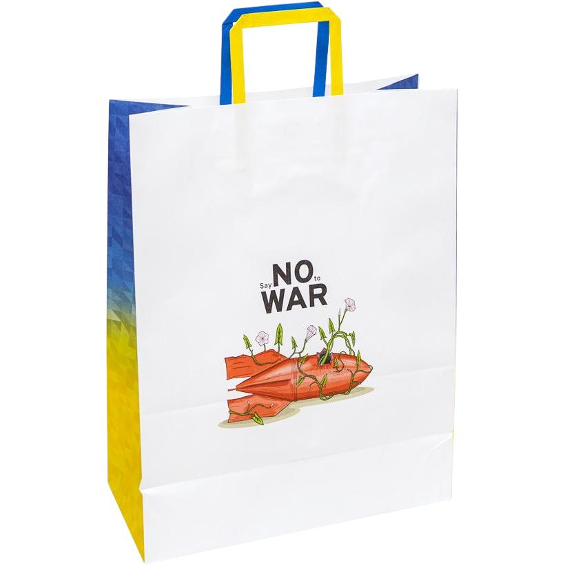 Паперовий пакет розміром 32х15х30 см виготовлений з паперу 100 г/м². Має кольорові прямокутні паперові ручки. Друк виконаний у 4 кольорах Pantone з основним дизайном з обох бок ...