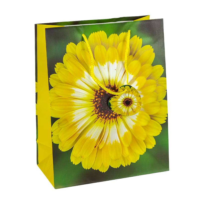 Паперовий пакет розміром 26x32x12 см, виготовлений з художнього паперу 140 г/м2. Має повнокольоровий друк і матову ламінацію. Оснащений звичайною мотузковою ручкою 5 мм з ПП та кліпсою. У комплекті є подарунковий ярлик. В одній упаковці представлений один дизайн.