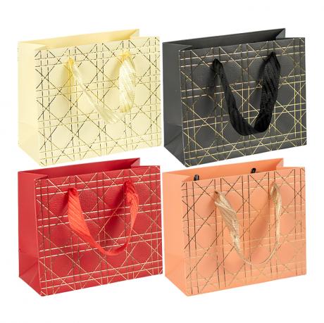 Подарунковий пакет горизонтального формату з тисненням фольгою — ефектне рішення для презентабельного пакування товарів. Висота — 18 см, ширина — 23 см, розмір дна — 10 см. Матеріал — щільний картон, ручка виконана з текстильної стрічки. Тиснення фольгою підкреслює дизайн і робить пакет більш виразним. Пакет підходить для пакування косметики, аксесуарів, сувенірів і подарунків середнього розміру. Міцна конструкція та стійке дно забезпечують зручність під час перенесення. Товар вигідний для оптових магазинів і підходить для роздрібного продажу. Ціна вказана за 1 одиницю товару, продається упаковкою по 12 шт.