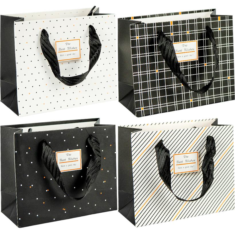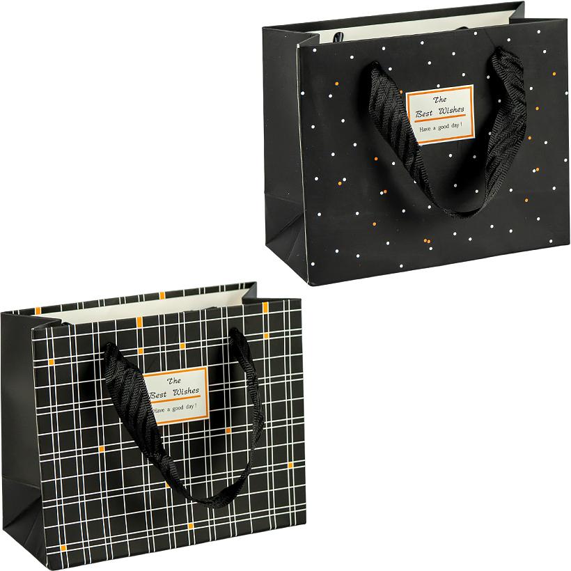 Подарунковий пакет горизонтального формату з принтом — універсальне рішення для акуратного пакування товарів. Висота — 26 см, ширина — 32 см, розмір дна — 11 см. Матеріал — щільний картон, ручка виконана з текстильної стрічки. Ціна вказана за 1 одиницю товару, продається упаковкою по 12 шт. Підходить для пакування косметики, аксесуарів, сувенірів і невеликих виробів. Стійке дно та зручні ручки забезпечують надійність під час перенесення. Товар вигідний для оптових магазинів і підходить для роздрібного продажу.