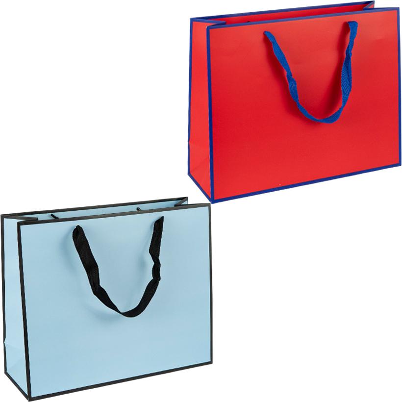 Подарунковий пакет однотонний горизонтального формату — універсальне рішення для акуратного пакування товарів. Висота — 26 см, ширина — 32 см, розмір дна — 11,5 см. Матеріал — щільний картон, ручка виконана з текстильної стрічки, по краю передбачена контрастна окантовка. Ціна вказана за 1 одиницю товару, продається упаковкою по 12 шт. Підходить для пакування косметики, аксесуарів, сувенірів і невеликих виробів. Стійке дно та зручні ручки забезпечують надійність під час перенесення. Товар вигідний для оптових магазинів і підходить для роздрібного продажу.
