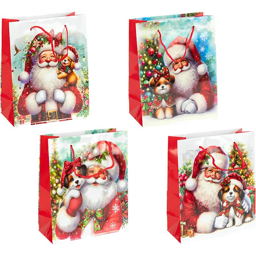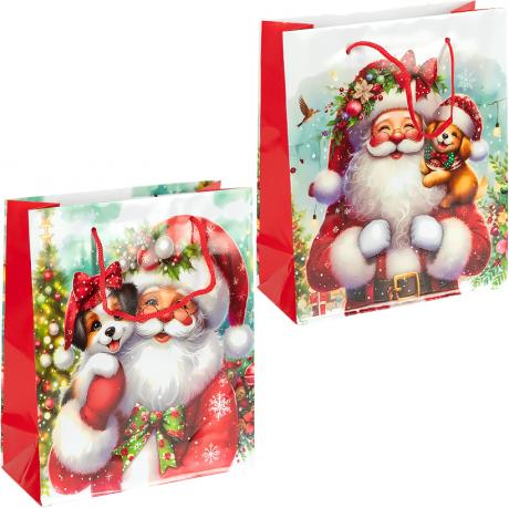 Подарунковий пакет новорічної серії розміром 26×32×10 см — універсальне рішення для святкового пакування. Виготовлений із щільного ламінованого паперу з глянцевим покриттям, стійким до вологи та пошкоджень. Яскравий дизайн із новорічними сюжетами створює атмосферу свята та чудово підходить для пакування солодощів, сувенірів і подарунків. Пакет має міцні шнуркові ручки, зручні для перенесення. В упаковці 12 штук (4 різні дизайни) — практичний варіант для роздрібного та оптового продажу.