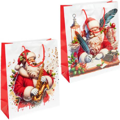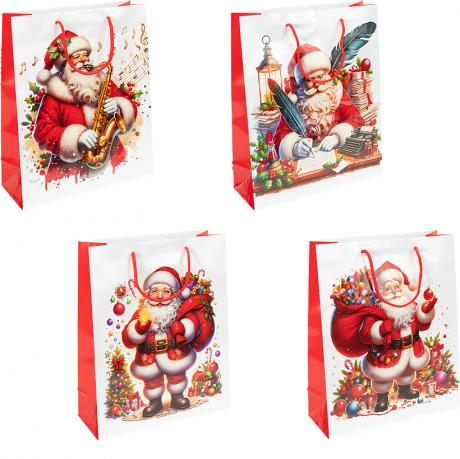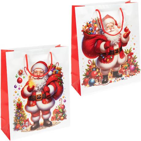 Подарунковий пакет новорічної серії розміром 26×32×10 см — універсальне рішення для святкового пакування. Виготовлений із щільного ламінованого паперу з глянцевим покриттям, стійким до вологи та пошкоджень. Яскравий дизайн із новорічними сюжетами створює атмосферу свята та чудово підходить для пакування солодощів, сувенірів і подарунків. Пакет має міцні шнуркові ручки, зручні для перенесення. В упаковці 12 штук (4 різні дизайни) — практичний варіант для роздрібного та оптового продажу.