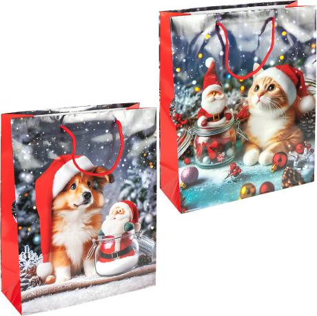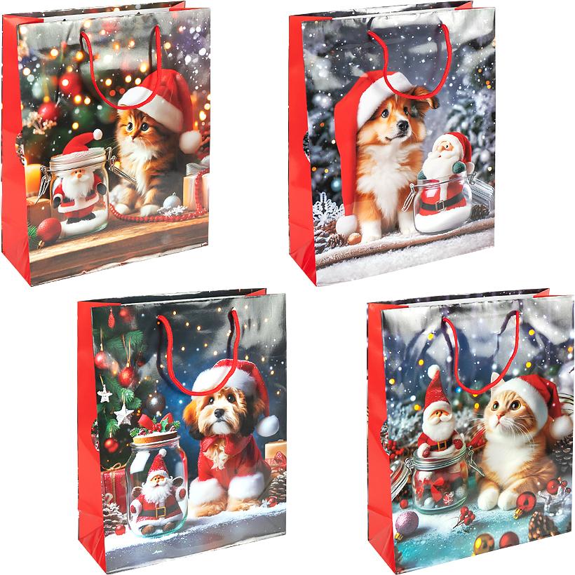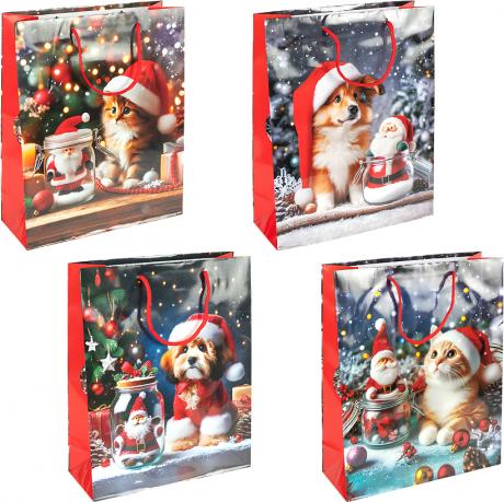 Подарунковий пакет новорічної серії розміром 32×44×11 см — універсальне рішення для святкового пакування. Виготовлений із щільного ламінованого паперу з глянцевим покриттям, стійким до вологи та пошкоджень. Яскравий дизайн із новорічними сюжетами створює атмосферу свята та чудово підходить для пакування солодощів, сувенірів і подарунків. Пакет має міцні шнуркові ручки, зручні для перенесення. В упаковці 12 штук (4 різні дизайни) — практичний варіант для роздрібного та оптового продажу.