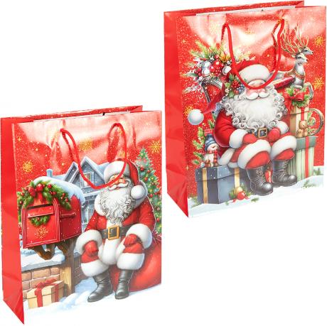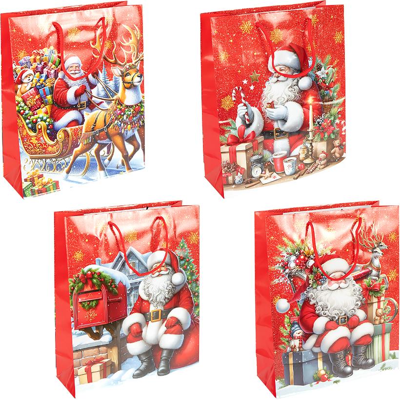Подарунковий пакет новорічної серії розміром 32×44×11 см — універсальне рішення для святкового пакування. Виготовлений із щільного ламінованого паперу з глянцевим покриттям, стійким до вологи та пошкоджень. Яскравий дизайн із новорічними сюжетами створює атмосферу свята та чудово підходить для пакування солодощів, сувенірів і подарунків. Пакет має міцні шнуркові ручки, зручні для перенесення. В упаковці 12 штук (4 різні дизайни) — практичний варіант для роздрібного та оптового продажу.