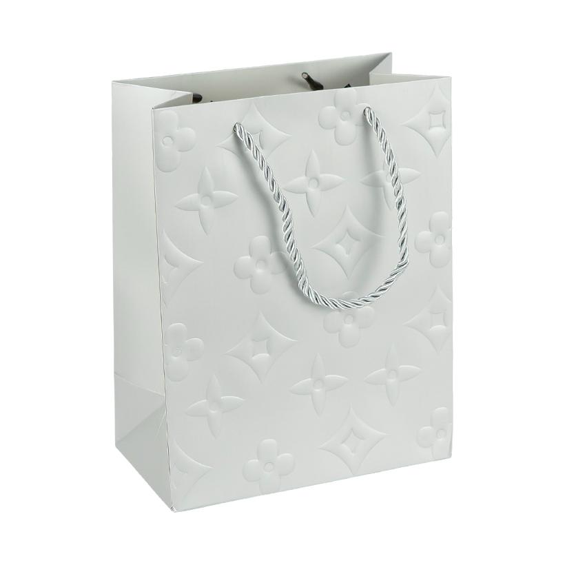Подарунковий пакет однотонний з рельєфним тисненням — практичне рішення для акуратного пакування товарів. Висота — 42 см, ширина — 31 см, розмір дна — 12 см. Матеріал — щільний картон, ручка виконана з текстильного шнура. Пакет підходить для пакування одягу, наборів, коробок і подарунків середнього розміру. Міцна конструкція та місткий формат забезпечують зручність під час перенесення. Товар вигідний для оптових магазинів і підходить для роздрібного продажу. Ціна вказана за 1 одиницю товару, продається упаковкою по 12 шт.