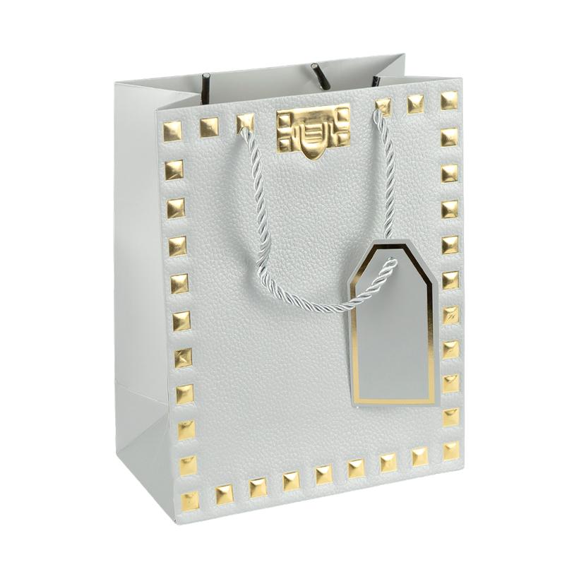 Подарунковий пакет із декоративним золотим оформленням — стильне рішення для презентабельного пакування товарів. Висота — 42 см, ширина — 31 см, ширина дна — 12 см. Матеріал — щільний картон із фактурним рельєфом під шкіру, ручка виконана з текстильного шнура. Золотий декор розташований на лицьовій стороні пакета. Пакет підходить для пакування одягу, косметичних наборів і коробок середнього формату. Міцна конструкція та стійке дно забезпечують зручність під час перенесення. Товар вигідний для оптових магазинів і підходить для роздрібного продажу. Ціна вказана за 1 одиницю товару, продається упаковкою по 12 шт.