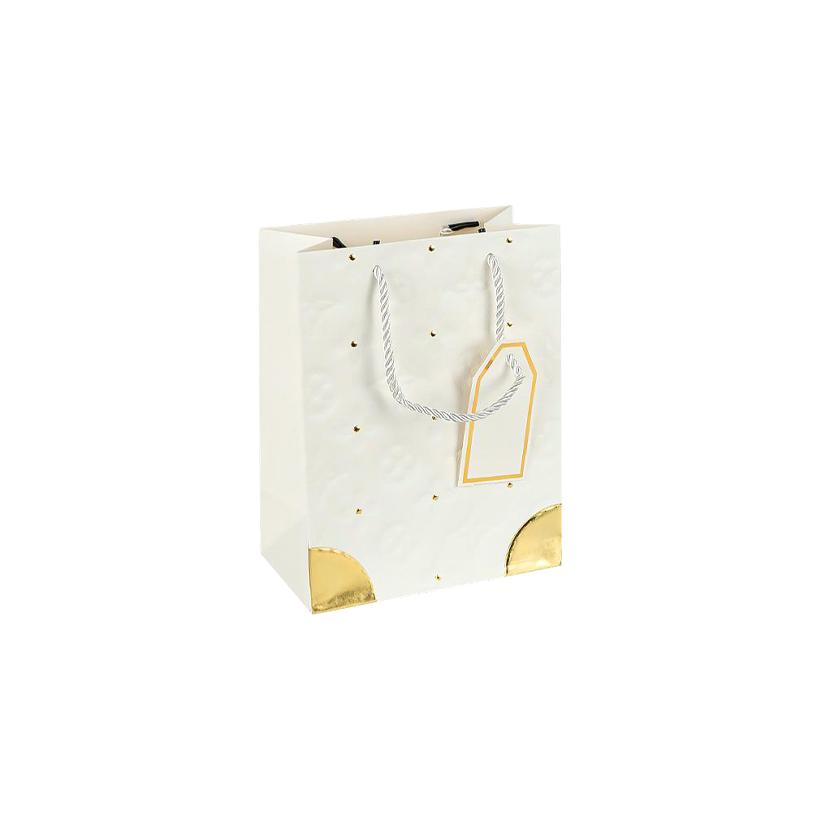 Пакет подарунковий 12х15х7 см з тисненням та золотим декором WHITE HL-1874