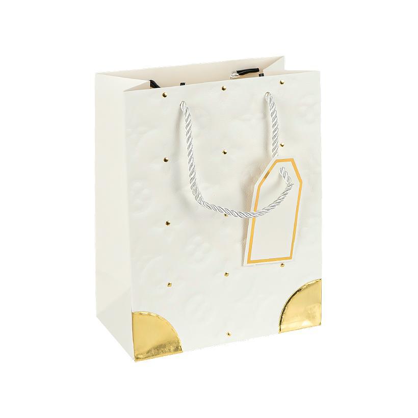 Пакет подарунковий 26х32х12см з тисненням і золотим декором WHITE HL-1876