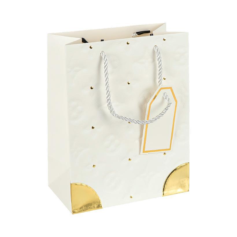 Пакет подарунковий 31х42х12см з тисненням і золотим декором WHITE HL-1877