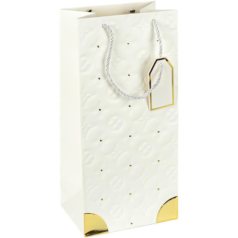 Пакет подарунковий 38х18х13см із золотим декором "Пляшка" WHITE HL-1878