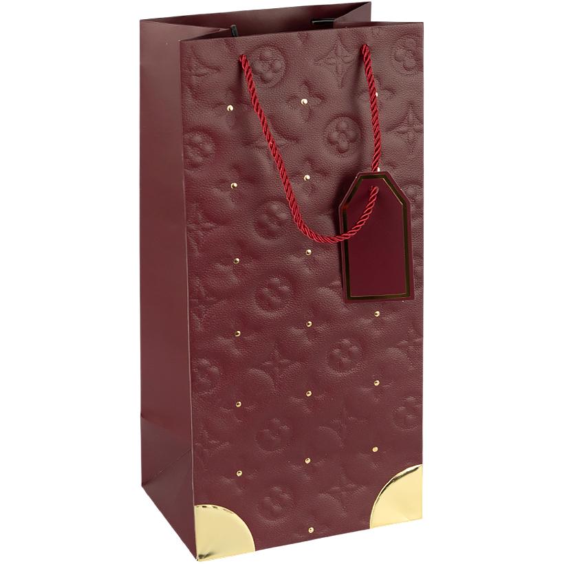 Пакет подарунковий 38х18х13см з золотим декором "Пляшка" JUJUBE RED HL-1903
