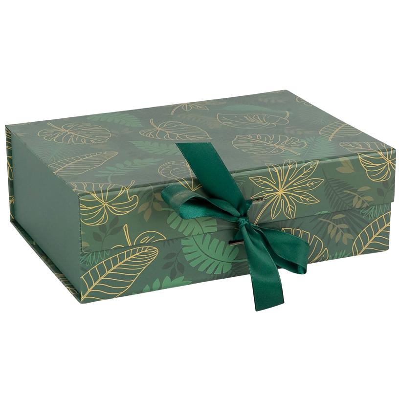 Подарункова коробка 33×25×12 см складна зі стрічкою та принтом DARK GREEN HL-218