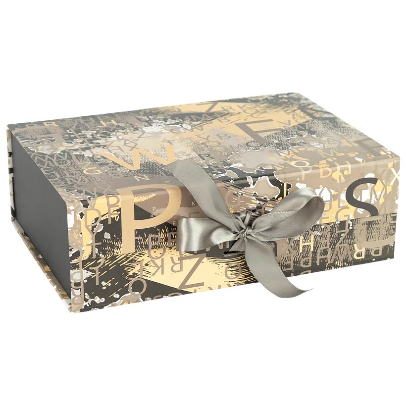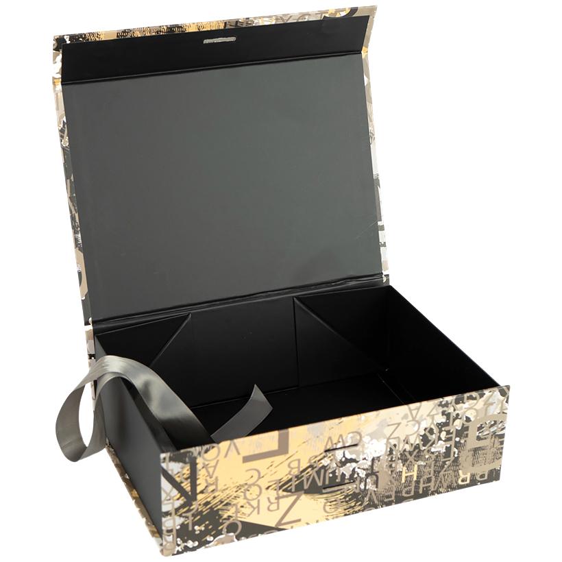 Подарункова коробка 33×25×12 см складна зі стрічкою та принтом BLACK GOLD HL-220