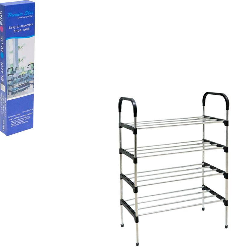 Компактна 4-ярусна полиця для взуття TW333-4 — практичне рішення для зручного зберігання взуття в квартирі, передпокої, на балконі або дачі. Розміри конструкції 54×28×87 см забезпечують оптимальне поєднання компактності та місткості. Полиця виготовлена з міцного пластику та металевих трубок, має стійку конструкцію та невелику вагу. Легко та швидко збирається без використання додаткових інструментів. Чотири яруси дозволяють розмістити до 12–16 пар взуття, допомагаючи підтримувати порядок і економити простір. Універсальний дизайн добре підходить до будь-якого інтер’єру. Полиця постачається в розібраному вигляді, компактно запакована, розмір упаковки — 59×14×6 см. Вдалий вибір для оптових закупівель і роздрібного продажу протягом усього року.