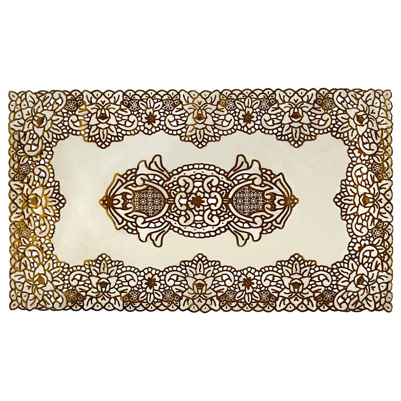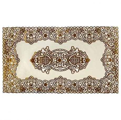 Прямокутна сервірувальна серветка для столу розміром 45×30 см у золотому кольорі — стильний і практичний елемент сервірування. Декоративний візерунок додає столу святкового вигляду та підкреслює естетику подачі страв. Серветка підходить для розміщення під тарілки, столові прибори, сервірувальні блюда, підноси й декоративні елементи. Вона захищає поверхню столу та скатертину від забруднень, подряпин і слідів від посуду. Прямокутна форма універсальна та добре поєднується з класичним і сучасним інтер’єром, підходить для щоденного використання й урочистих подій. Вдалий вибір для дому, кафе, ресторанів і банкетних залів.