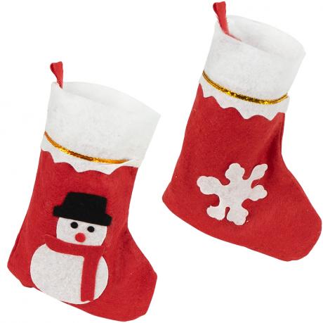 Новорічна шкарпетка для подарунків із фетру — стильна та святкова прикраса, що створює атмосферу затишку та казки. Розмір: висота 20 см, ширина 11 см, ширина підошви 14 см. Підходить для пакування солодощів, сувенірів або невеликих подарунків. Оснащена петелькою для підвішування на ялинку, камін чи стіну.