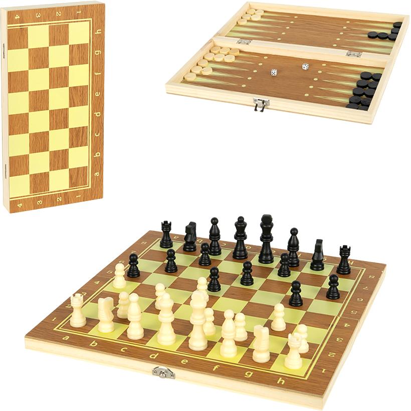 Дерев’яні шахи 3 в 1 — класичний набір для поціновувачів настільних ігор. У комплект входять шахи, шашки та нарди. Ігрове поле виготовлене з дерева, вирізняється міцністю та довговічністю. Зручна складна конструкція дозволяє зберігати фігури всередині дошки та брати гру з собою в дорогу. Розмір складеної дошки: 35×17×4 см.