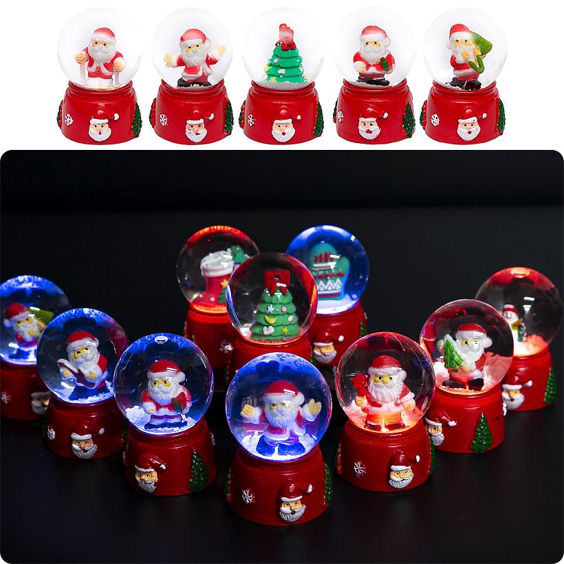 Сувенірна куля з мотивами "Дід Мороз" та "Сніговик". Усередині кулі обертається сніжок. Розміри: 4,5 см х 4,5 см х 7 см. Працює на трьох батарейках типу "AG3".