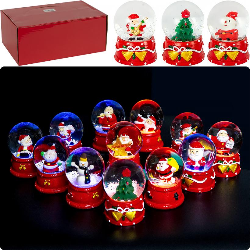 Сувенірна куля з фігуркою Діда Мороза або Сніговика — оригінальна новорічна прикраса з підсвічуванням. Усередині кулі під час струшування кружляє сніжок, створюючи чарівний ефект зимової завірюхи. Діаметр кулі — 6,5 см, загальна висота — 9 см. Працює від трьох батарейок типу AG3. Виготовлена з міцного пластику та скла. Ідеально підходить для декору дому, офісу, вітрини або як святковий сувенір. Представлена в асортименті дизайнів.