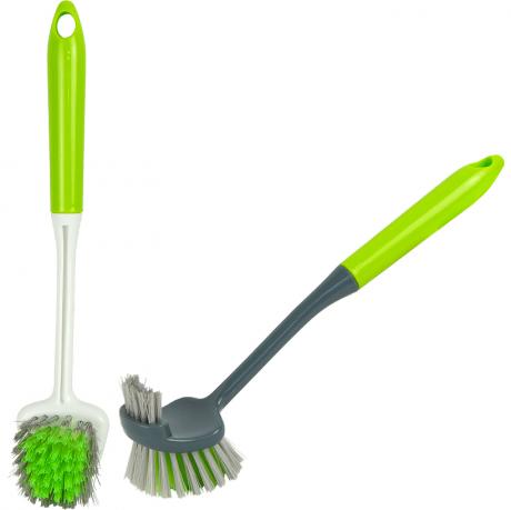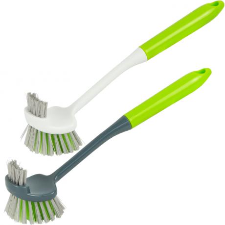 Щітка господарська двостороння 3558-A з довгою пластиковою ручкою — практичний інструмент для прибирання в домі та господарських приміщеннях. Загальна довжина 27 см, ширина робочої частини 4,5 см. Щетина 2,5 см і 1,5 см забезпечує ефективне очищення різних поверхонь і важкодоступних місць. Ручка 23 см гарантує зручність використання та комфорт під час роботи. Актуальний товар для роздрібної та оптової торгівлі господарськими товарами.