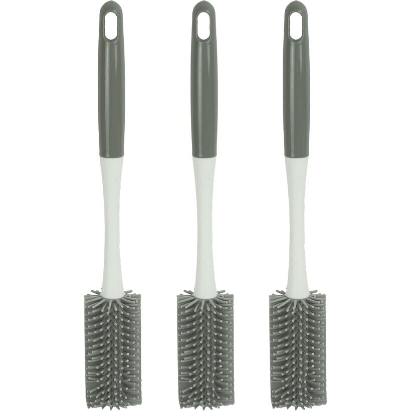 Щітка силіконова 3540-H для миття пляшок розміром 4,5×32 см — практичний інструмент для догляду за вузькими ємностями. Робоча зона 9×4,5 см і щетинки довжиною 1,5 см забезпечують ефективне очищення внутрішніх поверхонь без подряпин. Силікон стійкий до вологи та легко миється після використання. Ручка 23 см із місцем для пальця гарантує зручний і надійний хват. Актуальний товар для роздрібної та оптової торгівлі господарськими виробами.