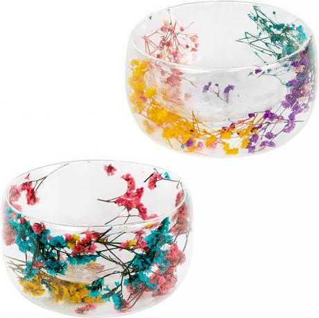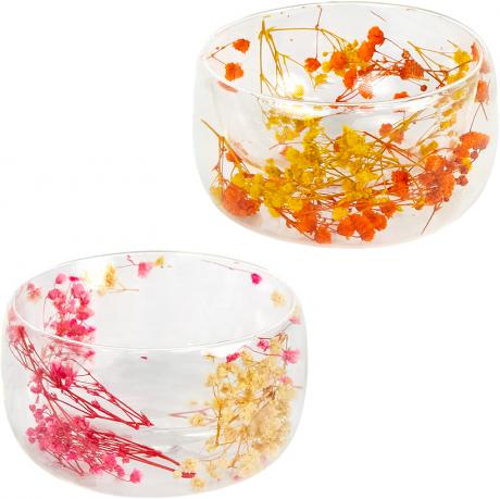 Піала об’ємом 450 мл поєднує вишуканий дизайн та зручність у використанні. Подвійне дно допомагає довше зберігати температуру напоїв і страв, захищаючи руки від нагрівання чи холоду. Внутрішнє оздоблення з декоративними квітами надає виробу оригінальності та стилю. Ідеально підходить для подачі чаю, десертів, закусок або як декоративний елемент у домі.