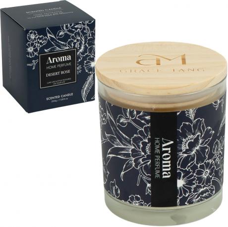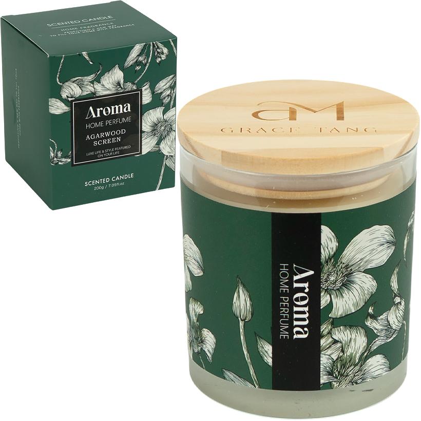 Аромасвічка воскова у прозорій скляній склянці з дерев’яною кришкою — стильна та універсальна позиція для декору дому. Чиста вага свічки — 200 г, вага зі склянкою — 520 г. Розмір склянки —, коробка — 10×8×8 см.