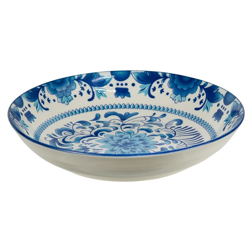 Обідня тарілка D27 см з яскравим розписним візерунком у синіх тонах. Центральний квітковий орнамент, обрамлений плавними завитками та декоративною каймою, нагадує традиційний г ...