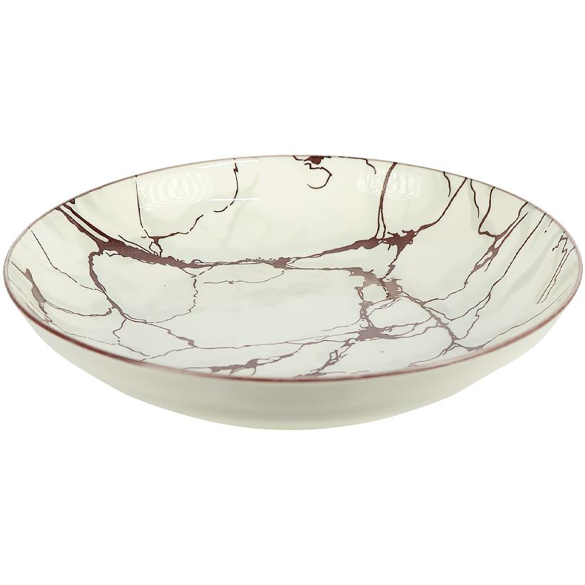 Керамічна тарілка з мармуровим візерунком, діаметр 23 см, висота 6,5 см, об’єм 700 мл. Виготовлена з міцної кераміки кремового кольору та оздоблена стильним мармуровим орнаментом. Глибока форма підходить для подачі супів, пасти, салатів і других страв. Чудово підходить як для щоденного використання, так і для святкової сервіровки.
