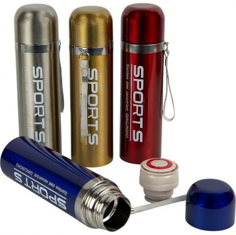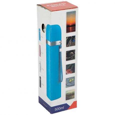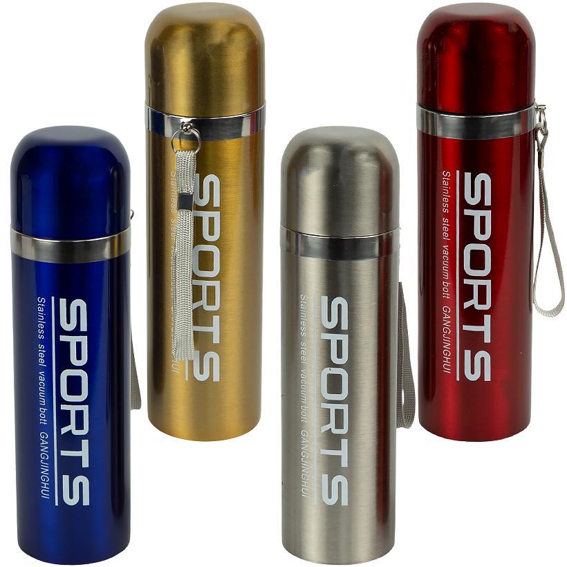 Термопляшка 500 мл із нержавіючої сталі — практичний аксесуар для спорту, активного відпочинку, роботи та прогулянок.Розмір пляшки 23×6 см, компактний формат підходить для рюкзака та автомобільного тримача. Модель виконана з глянцевим покриттям, що робить її помітною та привабливою для роздрібного покупця. Під кришкою розташована кнопка для зручного пиття без повного відкручування.