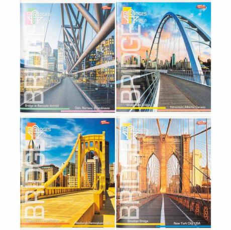 Зошит містить 96 аркушів з офсетного паперу, щільністю 65г/м², з червоними полями. Обкладинка виготовлена з повнокольорового картону щільністю 200г/м². У комплекті "mix" 4 різн ...