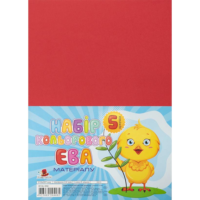 Фоаміран червоний EVA-002, А4,21х29,7см,2,00 мм 5 аркуш.