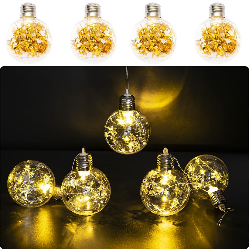 Прикраса-іграшка ялинкова "Куля-лампочка" 8см з підсвічуванням, теплий білий HL23X-004